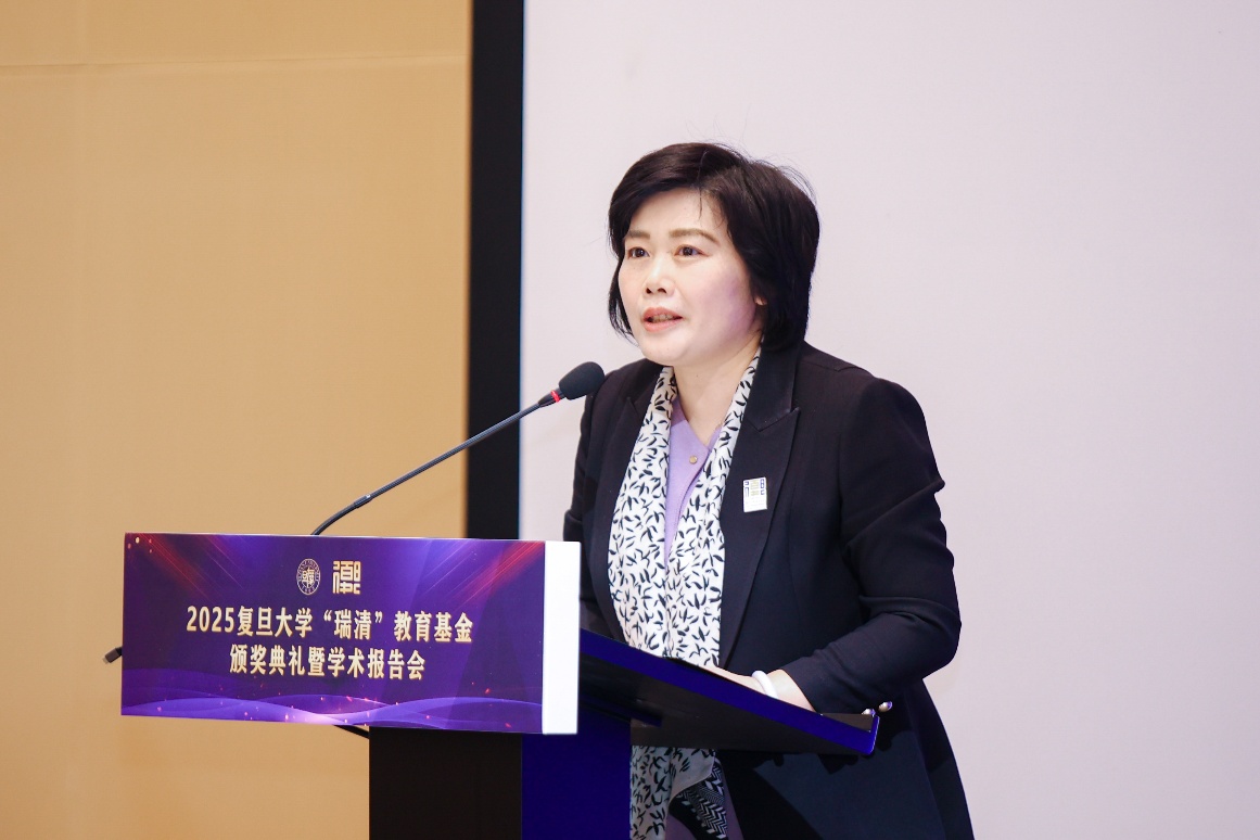 复旦大学党委副书记钱海红向受到表彰的老师和同学们表示热烈祝贺,向长期以来关心支持学校发展的谭瑞清先生和广大校友表示衷心感谢。她强调,“瑞清”基金已成为学校推动化学、材料、高分子及能源等学科领域人才引育和教育教学高质量发展的重要引擎,凝聚着复旦校友对母校的深厚情谊。她希望化学系、高分子科学系和智能材料与未来能源创新学院以基金为纽带,坚持教育、科技、人才一体推进,进一步聚焦国家战略所需、未来发展所向,强化使命驱动,为学校加快迈向中国特色世界一流大学前列贡献更大的力量。