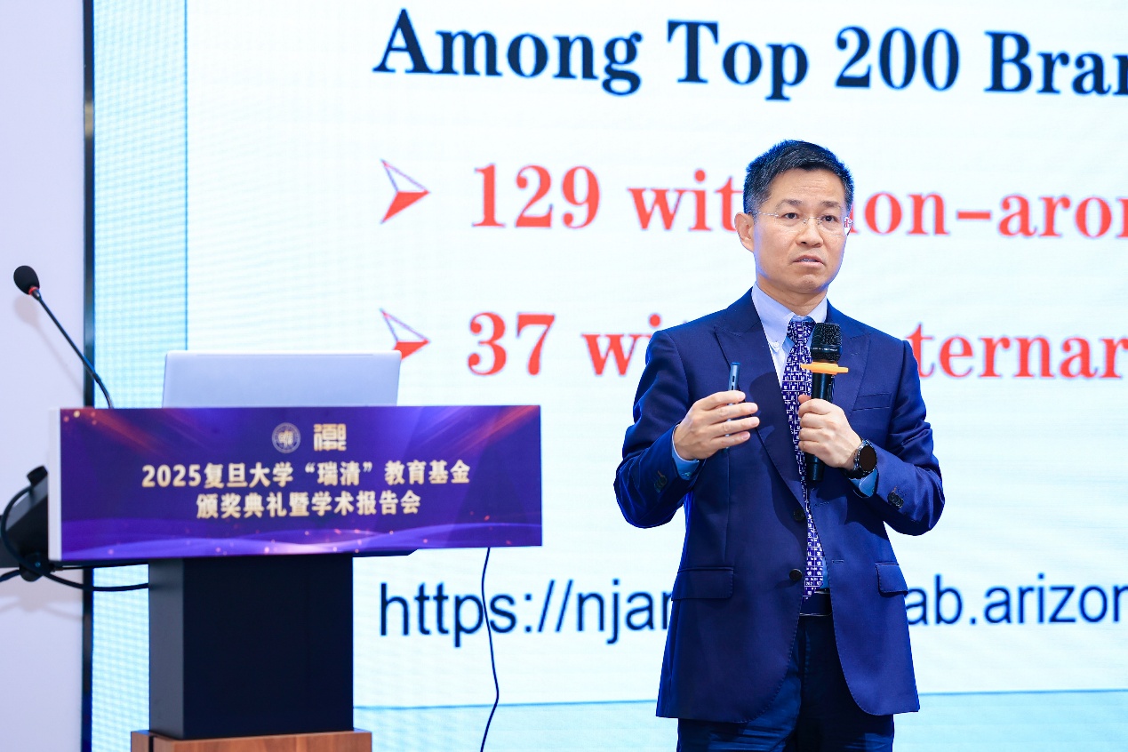 11月16日,2025年复旦大学“瑞清”教育基金颁奖典礼暨学术报告会在江湾校区化学楼周林林报告厅顺利举行,复旦大学党委副书记钱海红,复旦大学校董、化学系1984级校友谭瑞清,中国科学院院士、复旦大学智能材料与未来能源创新学院院长赵东元,中国科学院院士、复旦大学未来能源高等研究院院长包信和,中国工程院院士、江西师范大学校长陈芬儿,嘉定区委常委、统战部部长唐晓林,国家级教学名师、化学系教授范康年及来自化学系、高分子科学系、智能材料与未来能源创新学院的党政领导、师生代表和校友代表等二百余人出席活动。